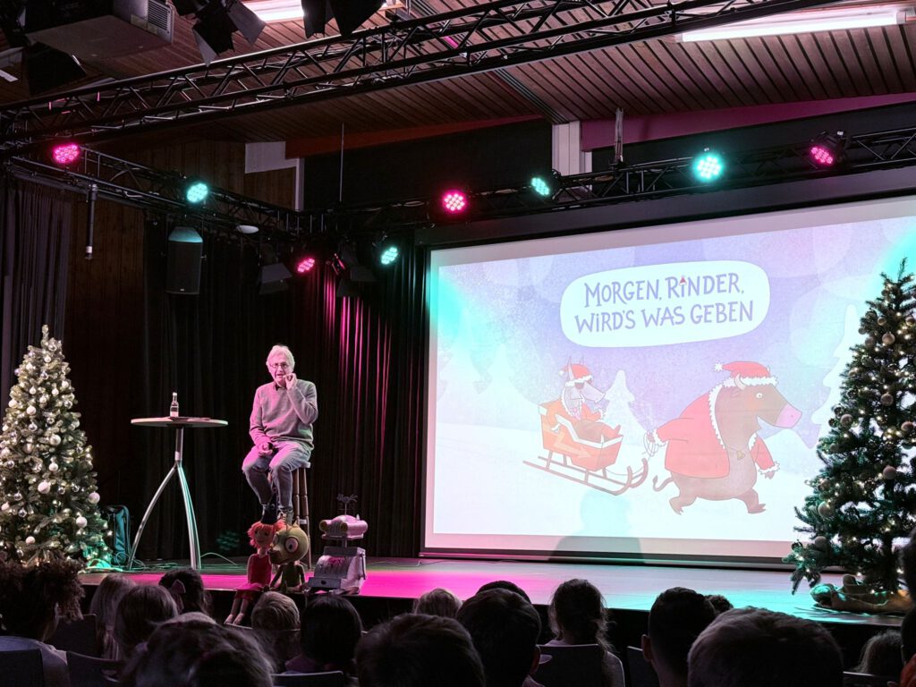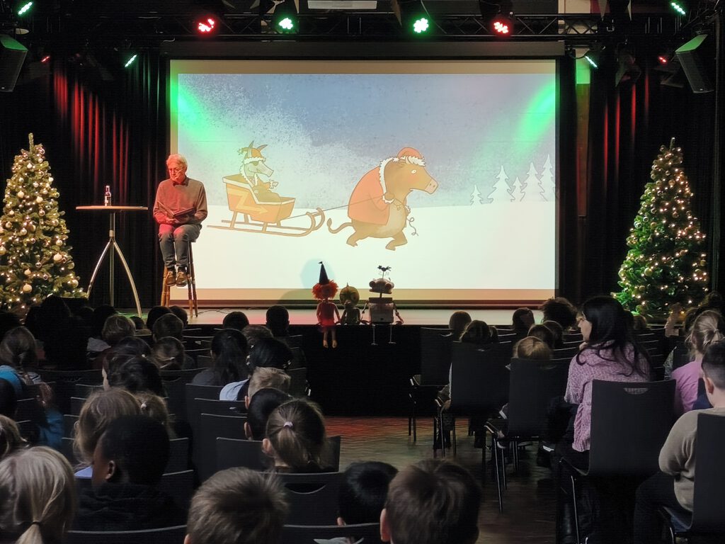 Wir waren mit den 1. und 2. Klassen bei einer Lesung von Jörg Hilbert, dem Autor der Ritter Rost Abenteuer und vielen anderen Kindergeschichten.